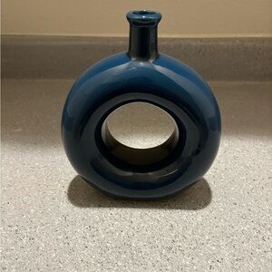Modern Round Donut Hole Ceramic Vase – Navy Blue, 7” x 6”