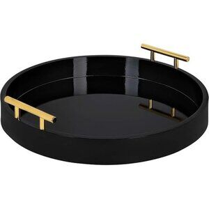 Modern Round Tray, 15.5" Diameter, Black and Gold, Decorative Accent Tray