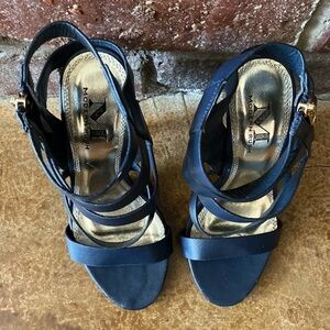 Modern Rush Navy leather strappy heel sandals. Size 6, side zip, approximately 5” heel, see pictures for details.