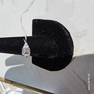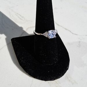 This Elegant Ring Features A Clear, Cushion-cut Center White Sapphire Accompanied By A Pair Of Clear, Trillion-cut White Sapphires, Totaling 1.80 Carats. The Band Width Is 2.2 Mm, And The Jewelry Base Metal Is A Lead-free Alloy (brass) With A Rhodium Plating Color. The White Sapphire Stones Are Set In Prongs, With The Center Stone Measuring 21mm In Length, 7mm In Width, And 6.25mm In Height. The Cushion-cut Center Stone And Trillion-cut White Sapphires Are 4mm In Size Each. With A Total Carat Weight Of 1.80 Ct. Believed To Be Simulated Gemstones. Keywords: Wedding, Engagement, Bridal, Anniversary,