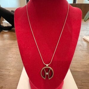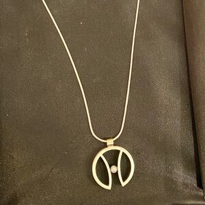 Modern Silver Pendant with Pearl drop. Silver Chain with lobster clasp.