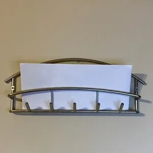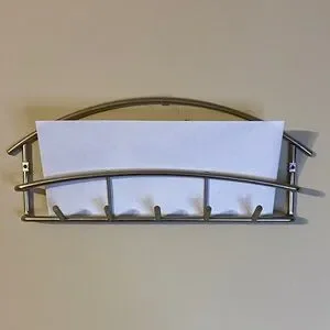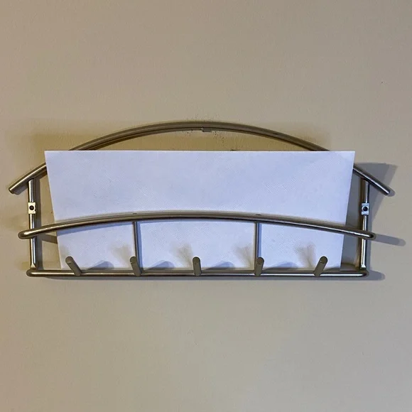 Enhance your home decor with this sleek silver wall rack. Its modern design adds a touch of elegance to any room.