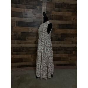 Modern Sleeveless White Floral High-Neck Maxi Dress Size Medium-X-Large