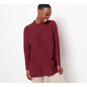 Modern Soul Mock Neck Tunic Sweater Oversized XS S Red Burgundy Pockets