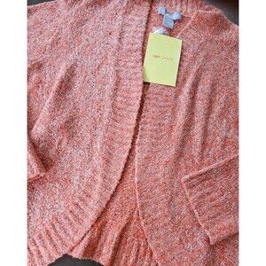 Modern Soul QVC Salmon Speckled Knit Open Front Cardigan Sweater 3XL NWT Plush