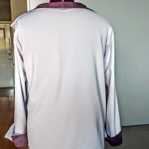Double layer open-front knit jacket from Modern Soul features turned-up sleeves, flap collar and reverses from a soft pale lavender to plum color.