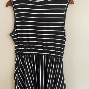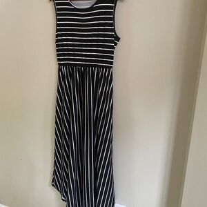 Modern Soul Woman’s XL Black and White Soft Striped Midi Hi- Lo Sleeveless Dress with Pockets