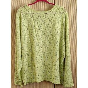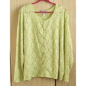 Modern Soul Women's 3X Green Floral Lace Button Up Light Cardigan Blouse EUC