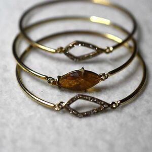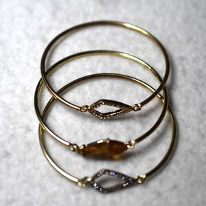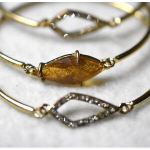 Modern Stylish 3 Stackable Gold Tone Amber Stone Rhinestone Accents 5" Bracelets