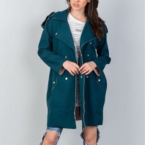 It is time to update your jacket collection with this fabulous modern cut teal jacket! Pair with your favorite sweater and leggings or blouse and jeans!