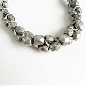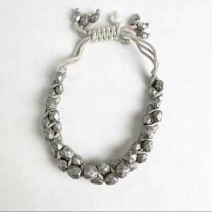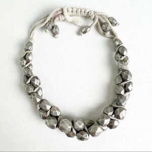 Chunky silver toner metal beads set on a string base with adjustable slide.