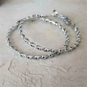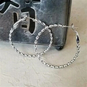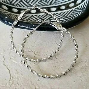 Sleek Twisted Rope Silver Tone Round Hoop Earrings 40mm 1.6" Long