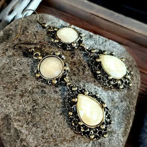 Modern Victorian Style Antique Brass Teardrop Cabochon Earrings