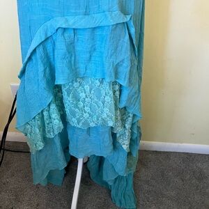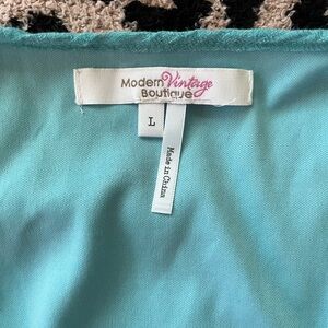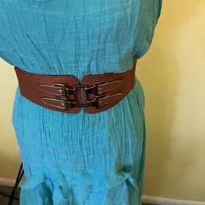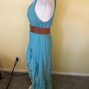 Modern Vintage Boutique Sleeveless Teal Dress with Brown Belt Size Large