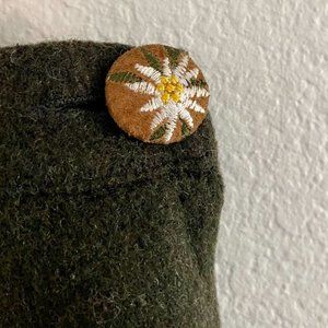 I have super big 😍 for this skirt! If only it were my size, le sigh. Style this skirt with tights, Docs, your favorite band tee, and a denim jacket. The leather and embroidery details are divine. The brass zipper is in great condition. Pockets sit high at an angle, making your bum look 100% banger. Great condition.