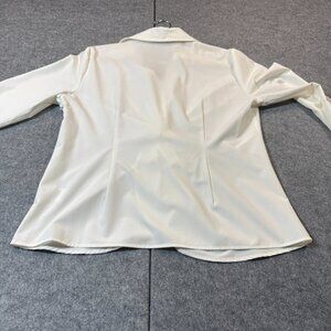 Modern Works Blouse Women Medium Cream Twist Front Gathered Long Sleeve Collared
