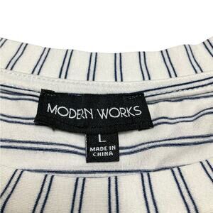 Modern Works Women’s Striped Cuff Short Sleeve Top Elastic tie bottom Size Large