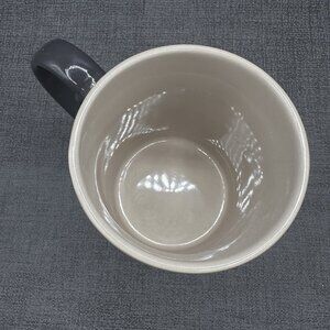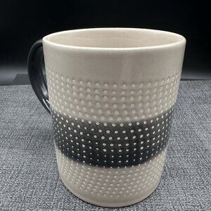 Find calm in every sip with this minimalist gray and black stoneware mug. Features raised dotted texture and smooth ombré glaze for a cozy, modern look.