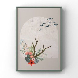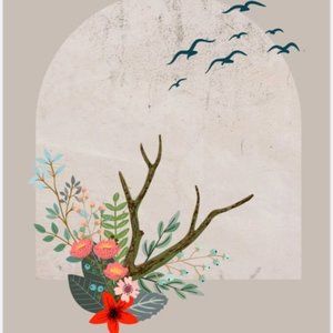 Modern minimalist boho neutral with multi color flowers, terracotta textured arch and blue flying birds illustrated unique abstract wall art print. Great for rustic modern theme decor or as a gift. Great for wall gallery. Check my other art. Size is 8.5” x 11” frame is not included. ask for other sizes. Bundle with other items to save on shipping plus 15% off three or more items. Ask if have any other question.