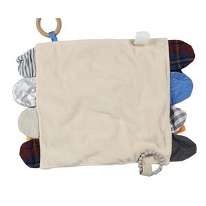 Modern Baby Lion Lovey Plush Tan Corduroy Ridged Teether Ring Security Blanket