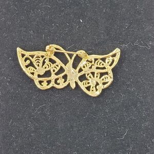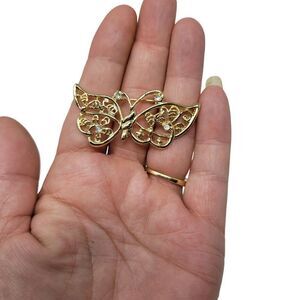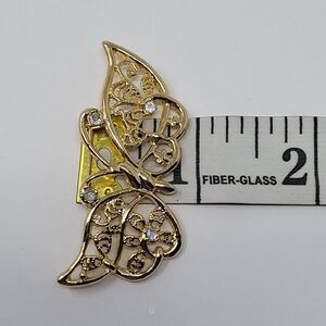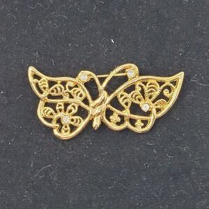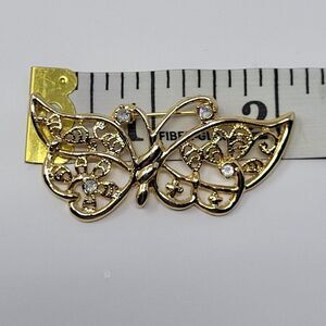Modern Gold Tone Filigree Butterfly Brooch Pin Pendant Rhinestone Embellished
