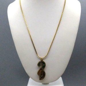 Modernist Brass Pendant Necklace with Stone and Resin Inlay, Retro Abstract Boho