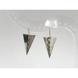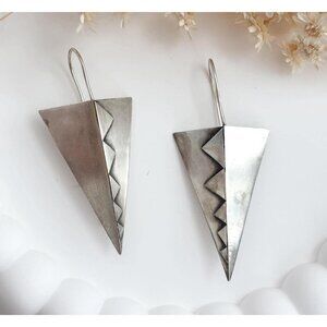 Modernist Geometric Triangular Vintage Southwest Made Sawtooth Dangle Earrings