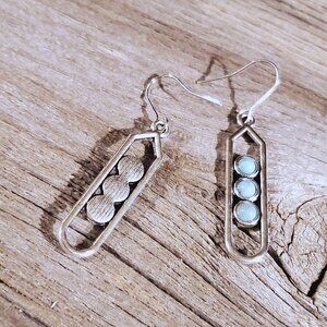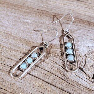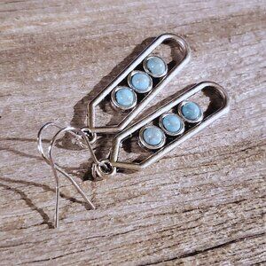 Modernist Geometric Turquoise Blue Stone Silver Dangle Earrings