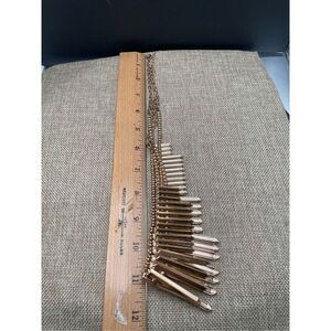 Modernist Gold Spike Geometric Bib Statement Runway Necklace Double Chain