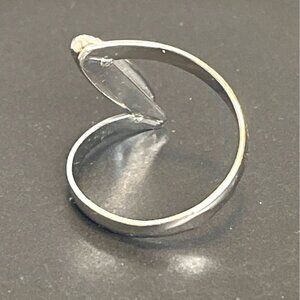 The sterling silver ring features a sleek design with a delicate white stone offering both elegance and versatility.