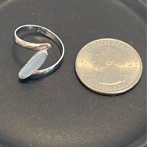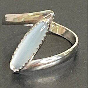 Modernist Marquise Chalcedony Cabochon Bezel Boho Sterling Silver Ring Size 7