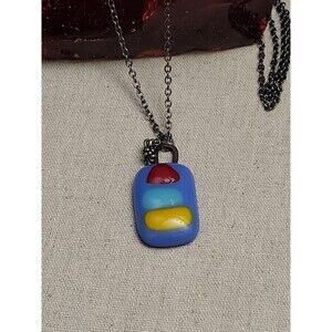 Modernist Modern Art Glass Pendant Charm Necklace Eclectic