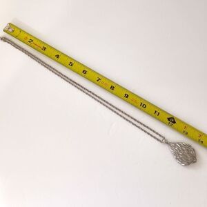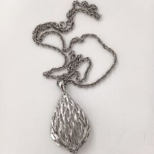 Modernist Necklace Open Work Teardrop Pendant Chunky Silver Tone Diamond Cut. Vintage Modernist Pendant Necklace Silver Tone Open Work Diamond Cut Brutalist. Condition is pre-owned and vintage. Appears to be in great condition. Chain measures 24". Unbranded. Please see photos for detailed condition.