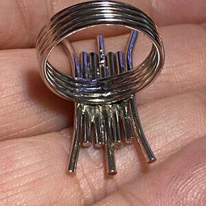 This unique, handcrafted ring blends modernist design with the timeless elegance of sterling silver, making it an eye-catching accessory for any wardrobe.