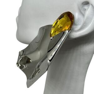 Modernist Sculptural Citrine Crystal Silver Statement Earring Avant-Garde Runway