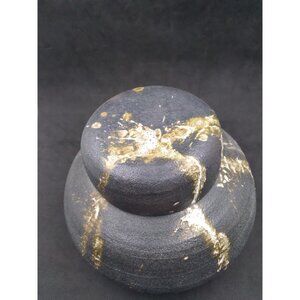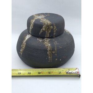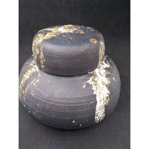 Vinrage unique Modernist Studio Pottery Splatter Paint style On faux lidded Vase signed Abrams? '73. Measures approximately 6" across and around 5" tall. The lid is part of the the vase it does not come off. Pre owned good vinrage condition with minor wear to finish from age. For more details please study all pictures.