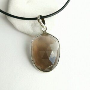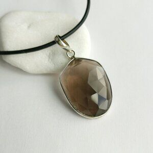 Modernist sterling silver freeform Smokey Topaz Smoky Quartz Pendant
