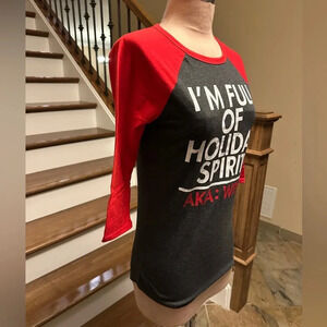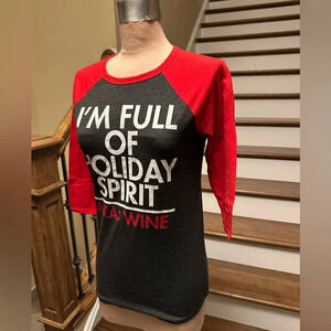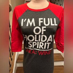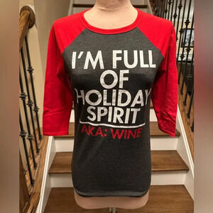 Modernlux Women’s Gray Red “I’m Full of Holiday Spirit AKA Wine” Graphic Tee XS