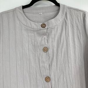 Modest Gray Full Button Pleated Maxi Pocket Dress Gauze Women’s Medium