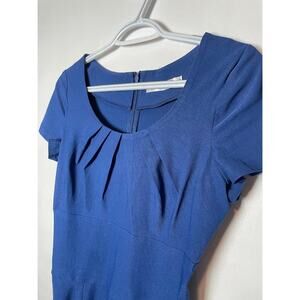 Modest Pencil Dress Womens Size Small Cobalt Blue Short Sleeve Midi Sheath Dress