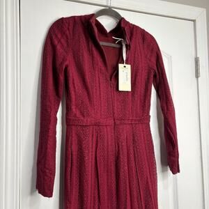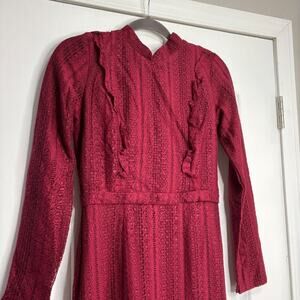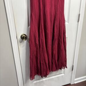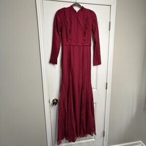 Modest Red/Purple Long Sleeve Lace Overlay Maxi Dress Size 40/Small NWT