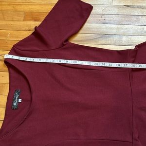 Modeway Dark Red Scoop Neck Midi Dress with Half Sleeves