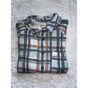This is a super cute, soft and comfortable Modish Rebel women’s Sz. S multicolor plaid button up. Super soft, comfortable and great quality material blend. Warm, yet not heavy and perfect for any season. Normal signs of wear, wash and use. No issues or problems. Top is meant to look “ weathered and comfortable” . Cute!