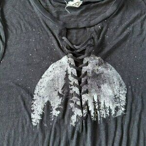 Modish Rebel women's lace up neckline short sleeve moon Graphic T-shirt black