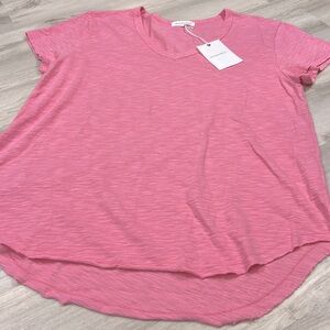 Mododoc Agave Pink Relaxed Fit Curve Hem Short Sleeve V-Neck Cotton Burnout Tee