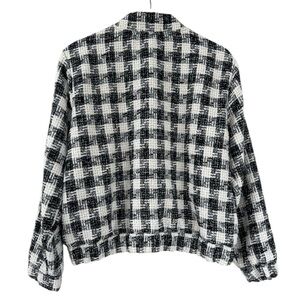 Mododoc NWT Cinched Oversized Bomber Jacket Cream and Black Plaid Size Small