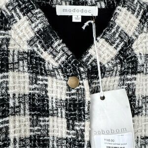 Mododoc NWT Cinched Oversized Bomber Jacket Cream and Black Plaid Size Small