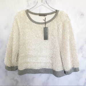 Mododoc Eyelash 3/4 Sleeve Sherpa Ivory Sweatshirt