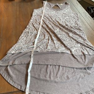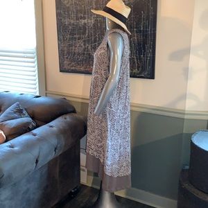 Gently used Mod-O-Doc high-low sundress. Two layers—under “dress” is solid heathered putty color. Outer layer has a print.