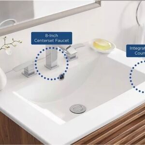 QUALITY CONSTRUCTION - This bathroom sink is crafted with durable ceramic and features an 8-inch centerset with an integrated countertop and rectangular basin design